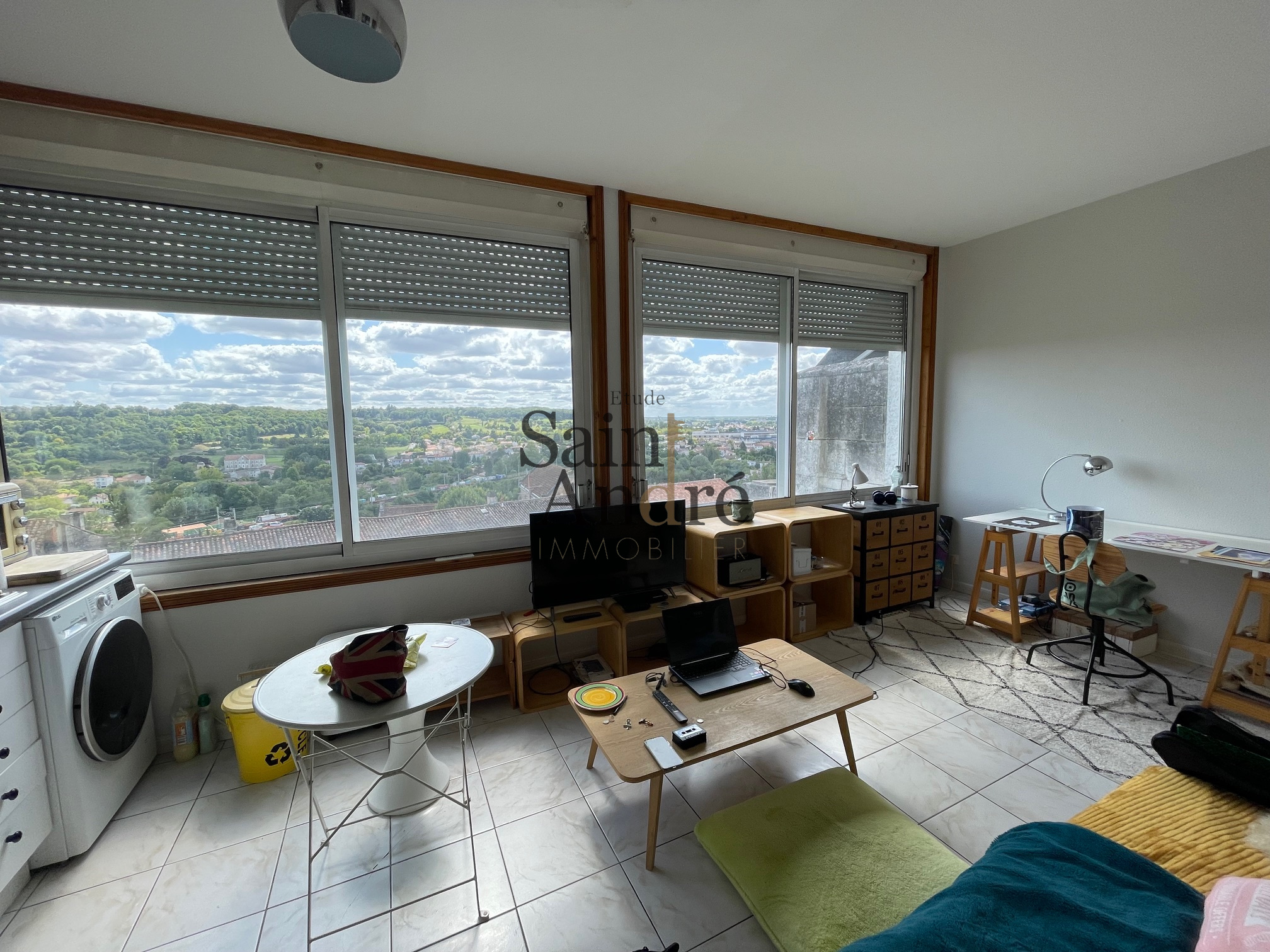 Sur les remparts d'Angoulême, en position dominante avec une vue très dégagée sur le Golf d'Angoulême, appartement de type T2 d'env. 36 m² comprenant un séjour avec cuisine A/E, Chambre avec rangements/placards, Salle d'eau et toilettes séparé