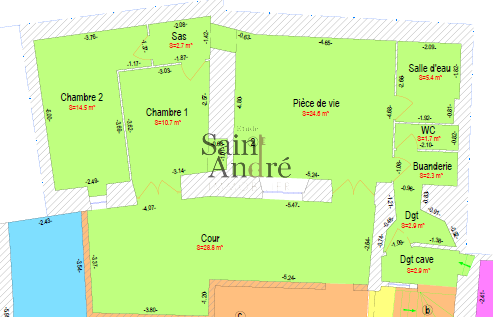 L’appartement dispose également d’une cour privative et de deux caves en sous-sol offrant un espace de stockage.