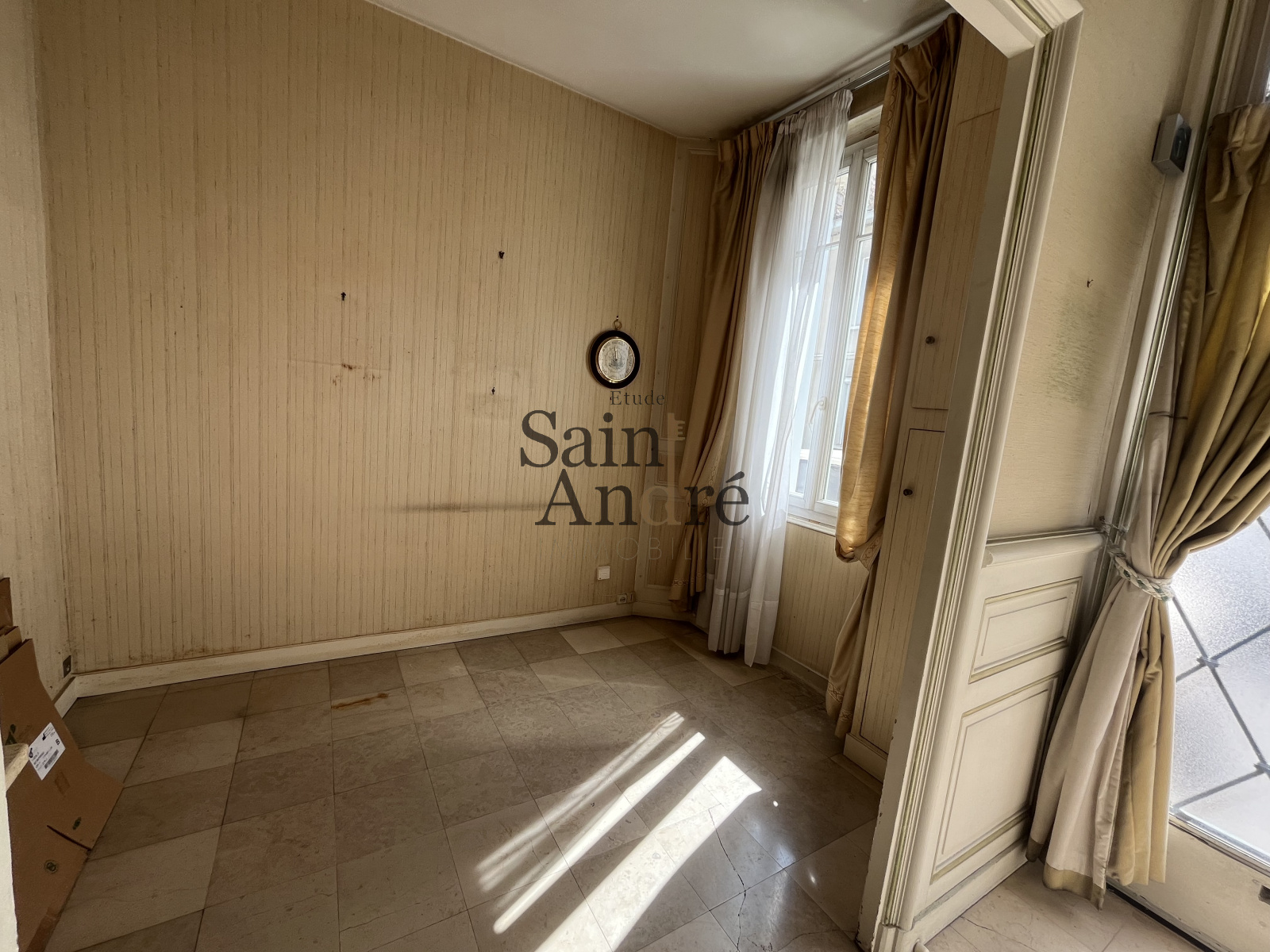 Si cette coquette demeure nécessite quelques travaux de réhabilitation, elle bénéficie d’un atout rare en centre-ville : un grand garage attenant.