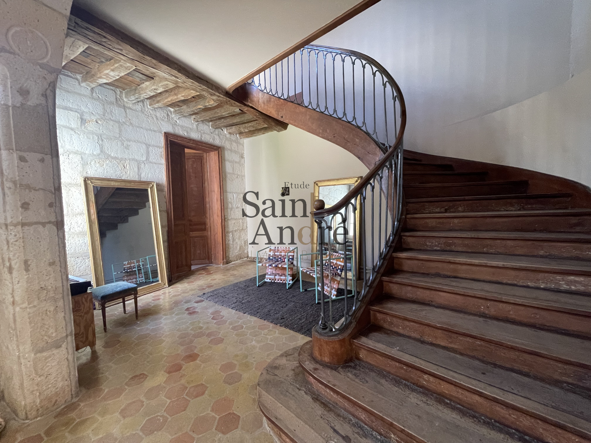 Dès l’entrée, un hall raffiné met en valeur un majestueux escalier, véritable pièce maîtresse de la maison. Le rez-de-chaussée accueille également un bureau avec rangements ainsi qu’une suite principale complète, composée d’un dressing, d’une salle de bains avec douche et baignoire, et de WC privatifs.
