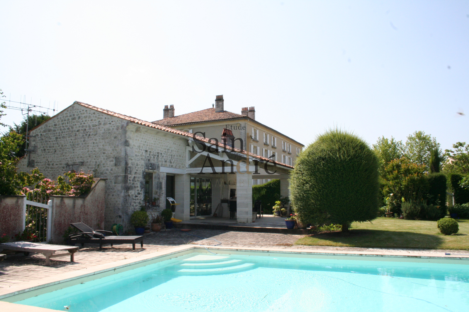 Découvrez cette splendide propriété dominant un jardin paysagé et arboré, unique en son genre, s'étendant sur environ 3 hectares. La résidence principale, d'une superficie de près de 600 m², est en bon état général et offre un cadre de vie élégant et spacieux. Le rez-de-chaussée comprend plusieurs salons parés de cheminées en pierre, une salle à manger, un bureau et une cuisine ouvrant sur les jardins, toutes avec des sols en terre cuite de pays, créant un espace de vie convivial et lumineux. Aux étages supérieurs, vous trouverez 8 chambres dont 7 en suite, et une suite principale, offrant confort & intimité. Pour vos moments de détente, profitez d'une piscine chauffée avec son poolhouse et d'un court de tennis. Les vastes dépendances peuvent accueillir des écuries et des équipements équestres, idéal pour les amateurs de chevaux. Une maison de gardien indépendante de 120 m², également en bon état, dispose de son propre jardin et garage. L'ensemble de la propriété s'étend sur 4,4 hectares de jardins et terrains, offrant un environnement calme et agréable à seulement quelques minutes des commerces et services. Située à 30 minutes d'Angoulême et de sa gare LGV, et à 1 heure de Bordeaux et de son aéroport, cette propriété unique combine charme, confort et accessibilité. COMPROMIS EN COURS