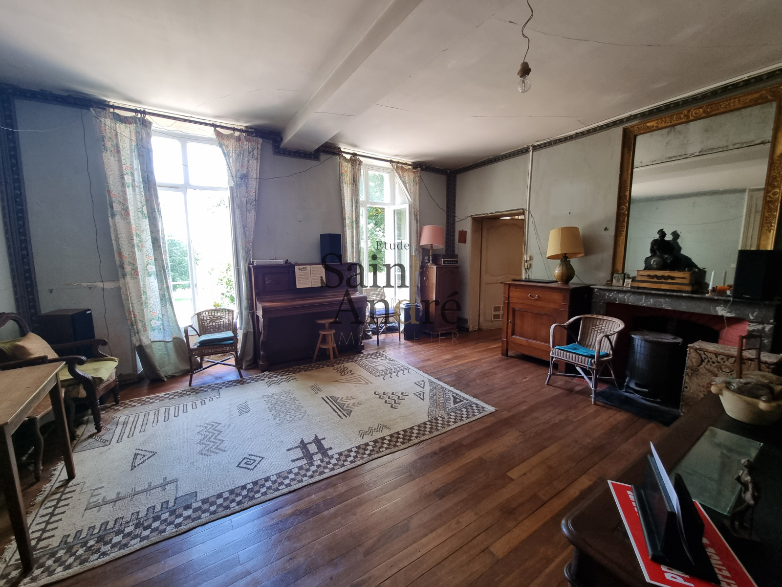 Édifiée face à son parc d’un hectare planté d’arbres centenaires, avec la possibilité d’acquérir davantage de terrain, la demeure offre environ 450 m² habitables répartis en 12 pièces, ainsi que plusieurs dépendances.