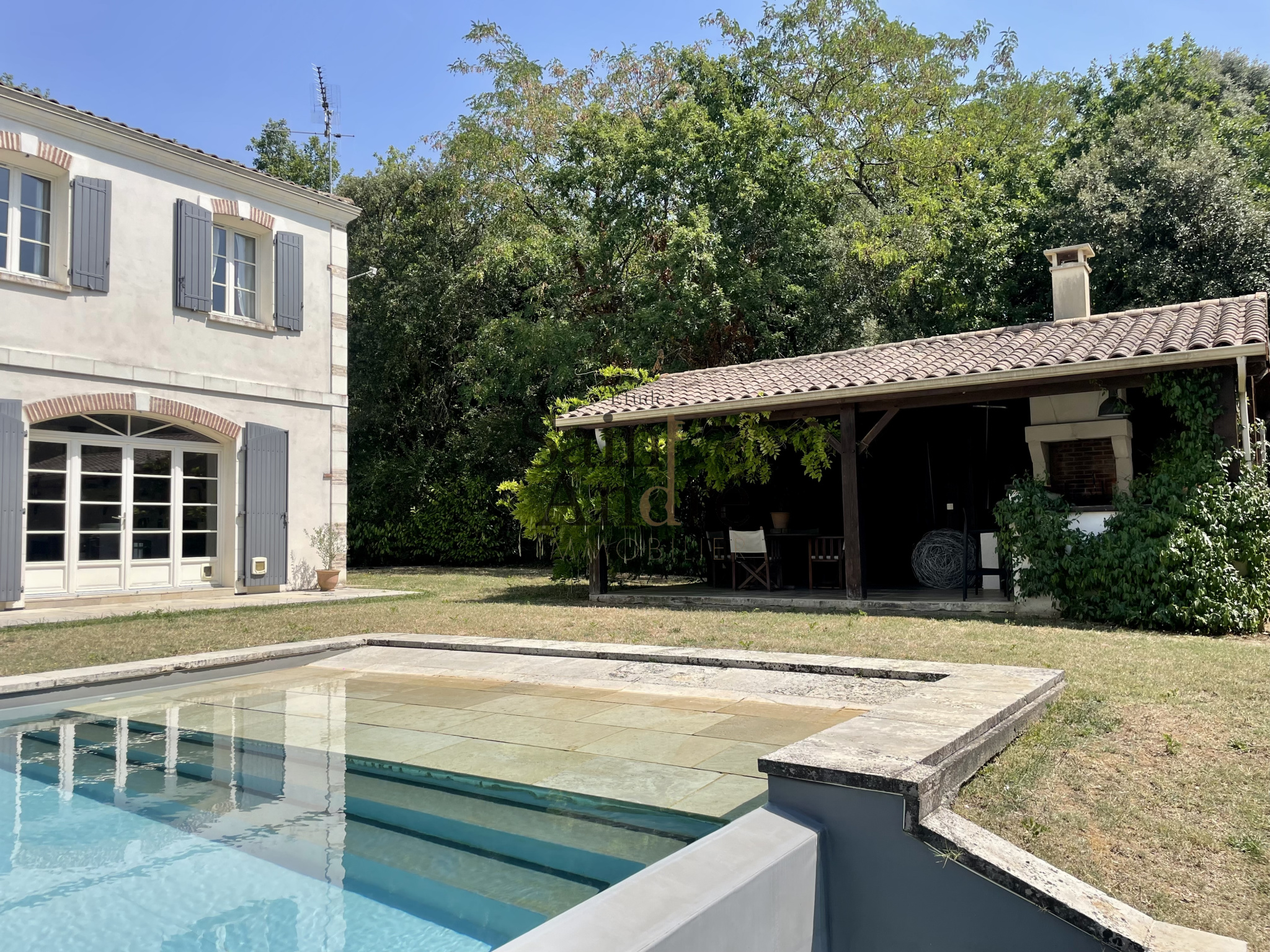 Presque toutes les pièces de vie du rez-de-chaussée s’ouvrent sur de grandes terrasses et un jardin soigneusement paysagé. Vous serez séduit par la superbe piscine chauffée à débordement et son pool-house entièrement équipé, parfaits pour vos moments de détente. Garages fermés et CarPort complètent les prestations.