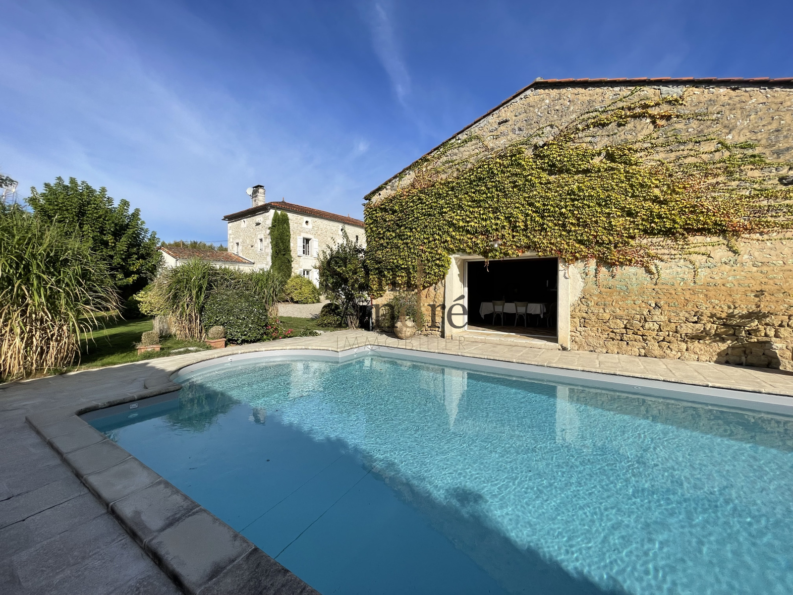 Découvrez cette charmante maison charentaise, parfaitement entretenue, qui allie authenticité et confort moderne. Elle se distingue par ses dépendances, son pigeonnier, sa piscine avec pool house, et un jardin clos et arboré, sublimé par un ancien lavoir. L'intérieur offre un salon chaleureux et une salle à manger dotée d'une cheminée, idéale pour des moments conviviaux. La cuisine est aménagée et équipée, complétée par une arrière cuisine pratique. La maison dispose de 3 chambres confortables, d'un bureau, d'une salle d'eau et de 2 wc. Cette propriété est idéale pour une maison de famille, que ce soit en résidence principale ou secondaire. Un véritable coup de cœur à découvrir sans tarder ! VENDU