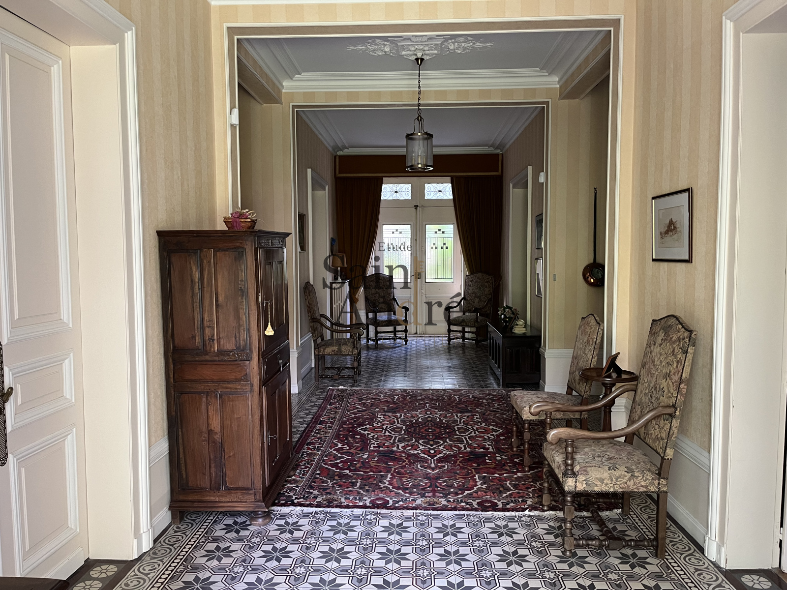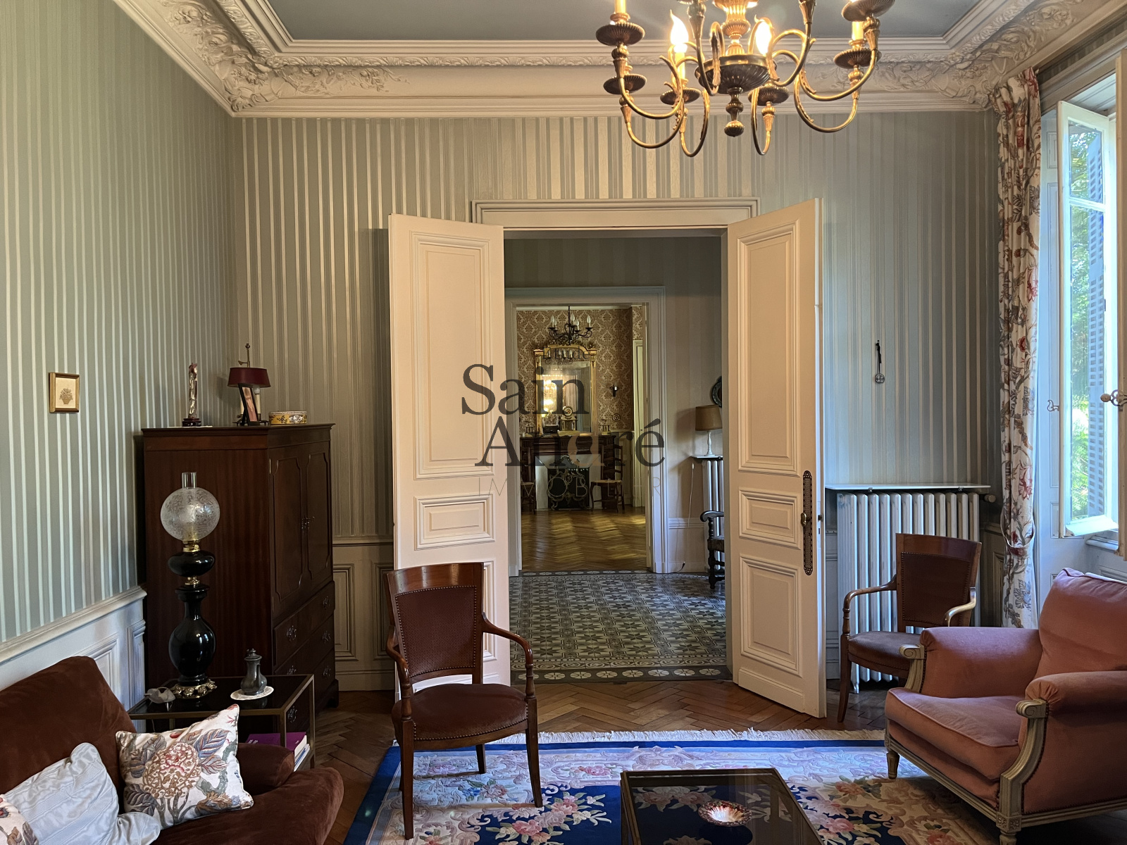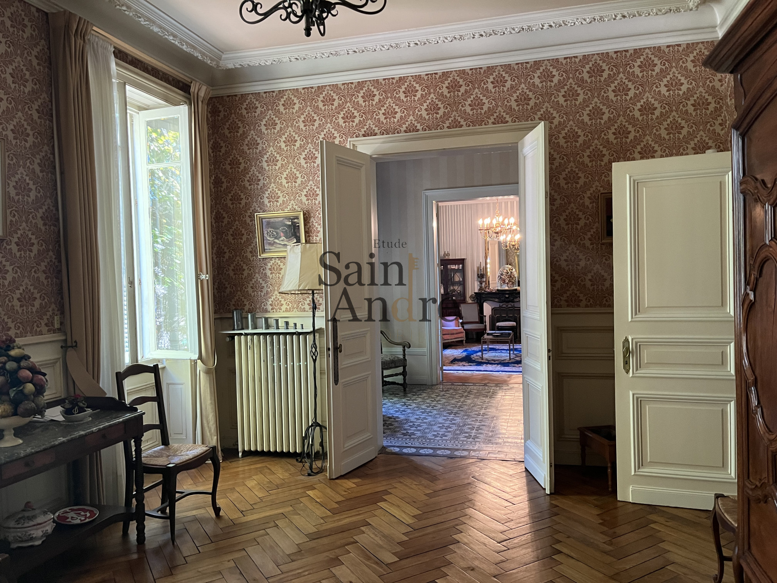 Cette belle maison bourgeoise style Napoléon III est composée de 10 pièces sur env. 350 m² hab. Pleine de charme et d'élégance, elle a conservé de nombreux éléments d'époques (carreaux de ciments, parquets à chevrons, moulures, cheminées...) et elle se distingue au milieu de son parc d'env. 2 300 m² clos de murs.