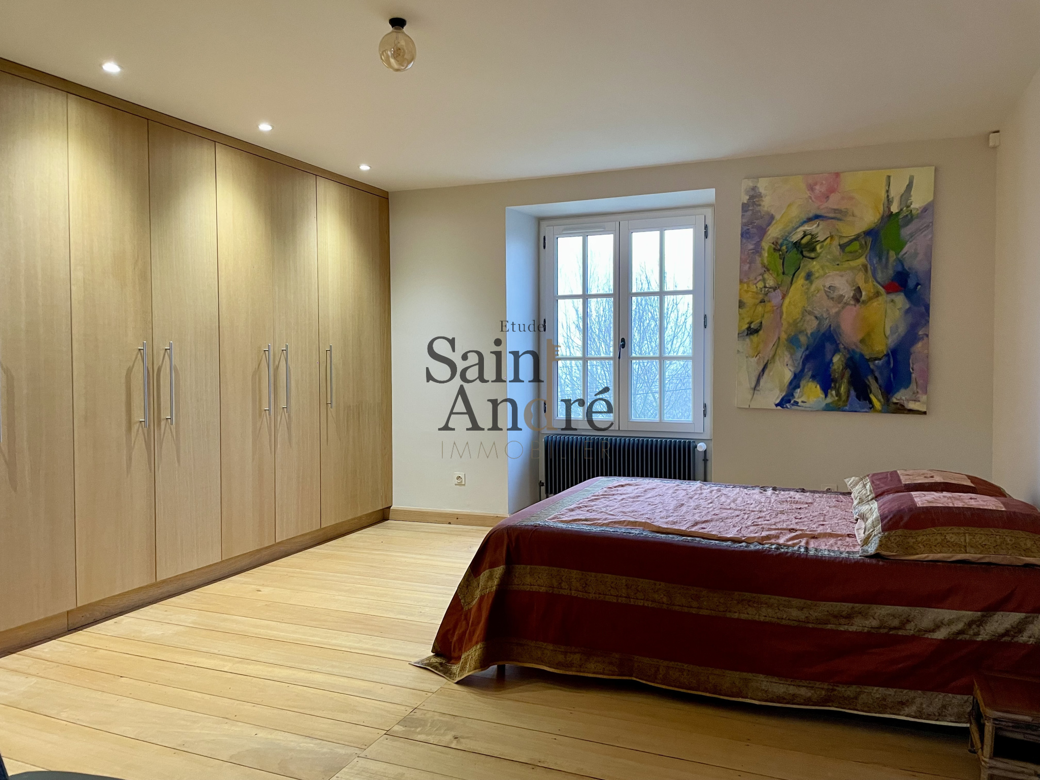 Dans un écrin de verdure, venez découvrir cette superbe maison du XVIe siècle alliant charme & d'authenticité. Elle offre env. 296 m² entièrement rénovés comprenant une entrée, salon, cuisine, une chambre et une salle d'eau. Au 1er étage, une chambre en suite avec sa salle de bains et douche, une 3ème chambre avec dressing et une 4ème chambre avec une salle de bains et remise. Le bien est équipé d'un système de chauffage par pompe à chaleur, de huisseries en double vitrage, d'un grenier isolé et d'un assainissement neuf par phytofiltration. À l’extérieur, profitez d’un jardin arboré planté d’arbres fruitiers, de 2 granges, d’un atelier et d’un cellier, offrant de multiples possibilités d’aménagement.