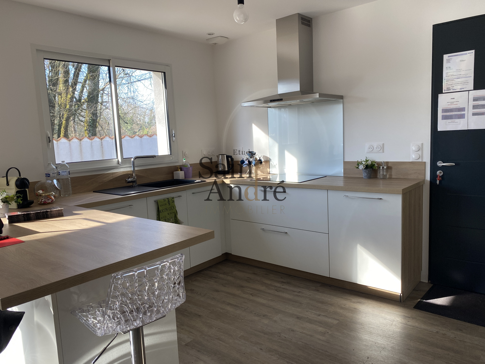 Espace de vie avec cuisine de 32 m² entièrement équipée & aménagée, cellier, 3 chambres, salle d'eau avec wc, et wc indépendant. Garage et terrain d'env. 450 m².
