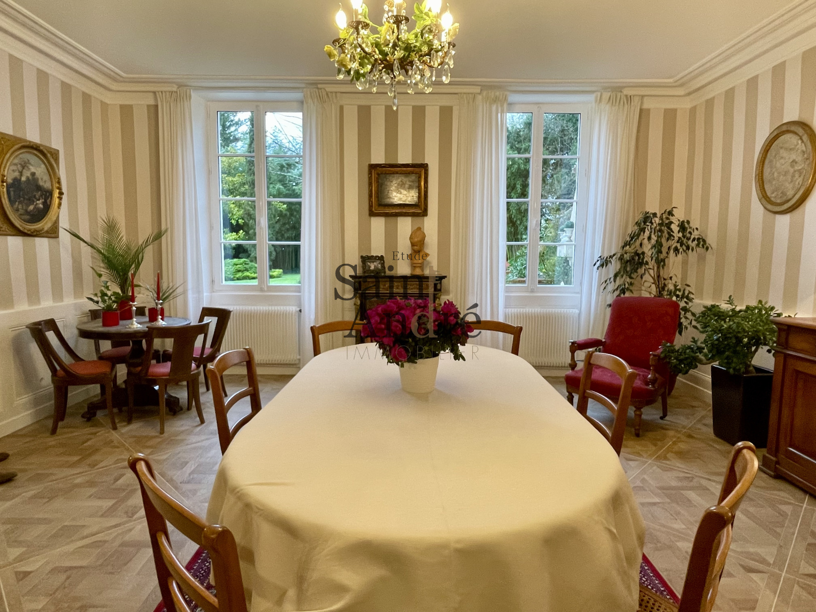 Cette jolie propriété comprend une élégante maison de famille d'époque mi XIXe offrant 7 pièces principales sur env 290m2 hab + 150m2 de grenier aménageable - Petite maison d'été d'env. 45m2 avec de petites dépendances attenantes, tout proche de la grande piscine et sa terrasse avec un espace barbecue - Vous profiterez aussi d'une belle grange d'env. 200m² au sol d'un seul et même volume - Cour agréable & Jardin paysagé avec de très beaux arbres dont un tilleul pluricentenaire.